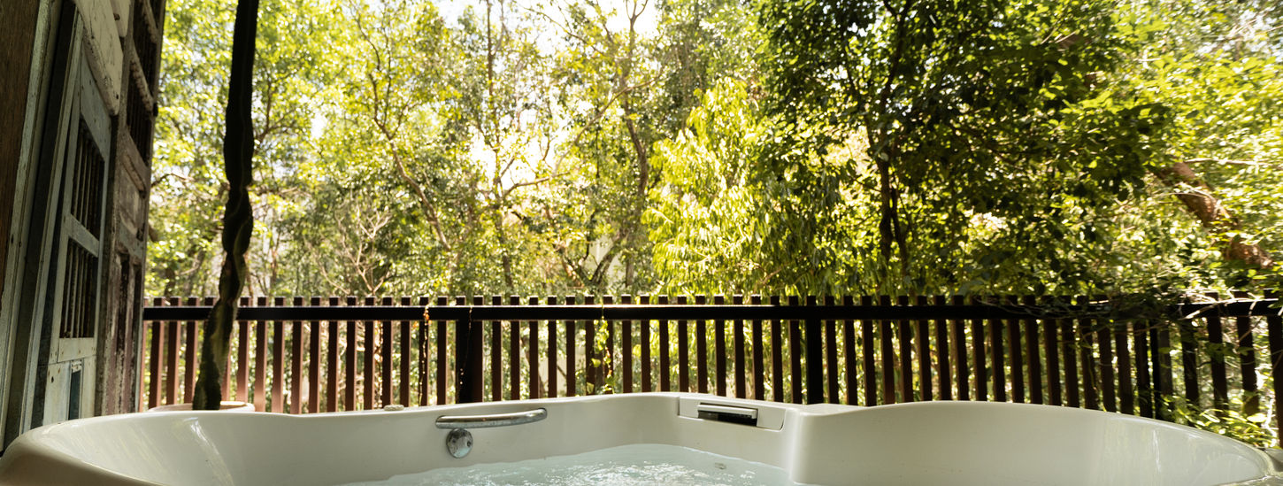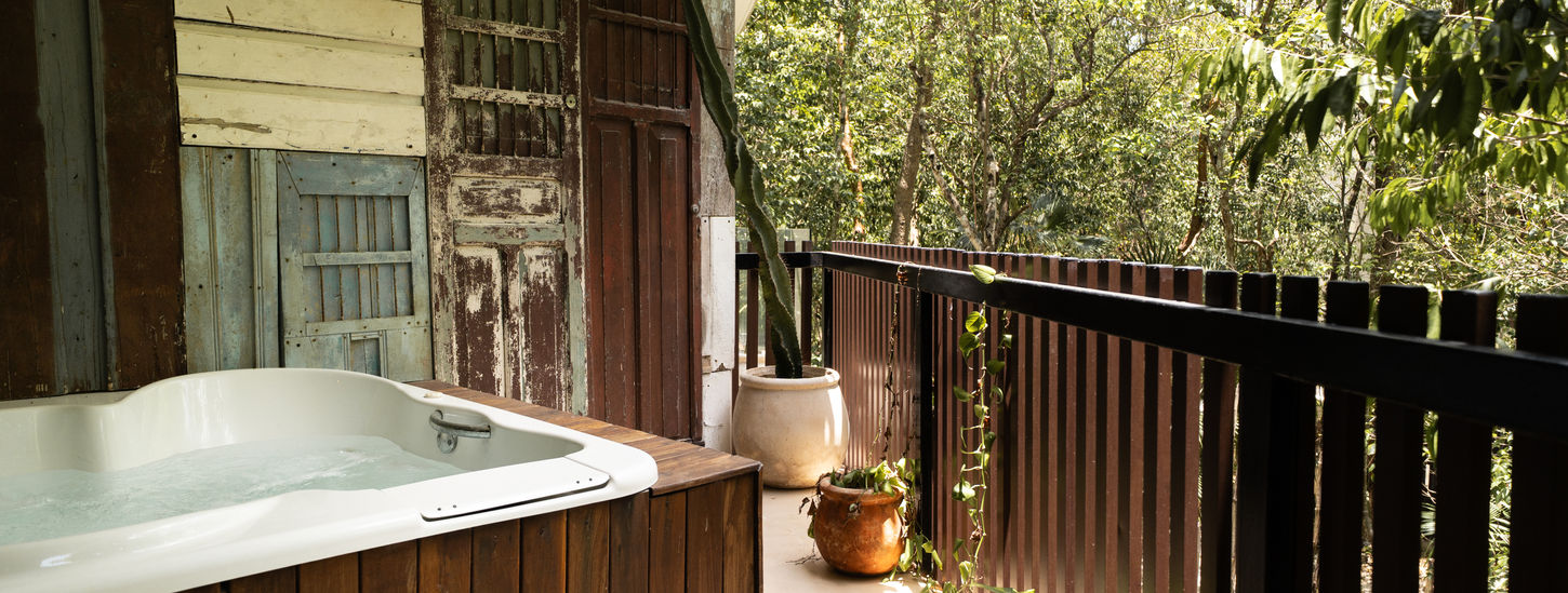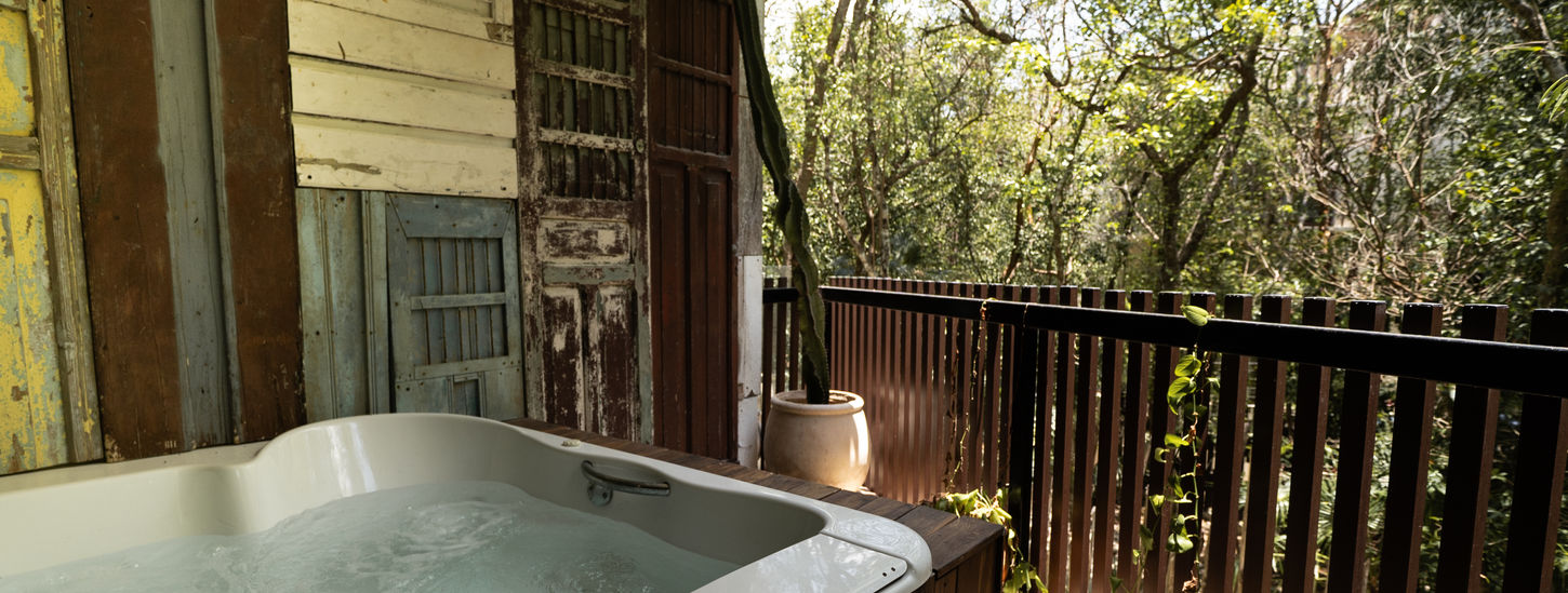 Jacuzzi privado en el balcón con capacidad para 4 personas y función de masaje.